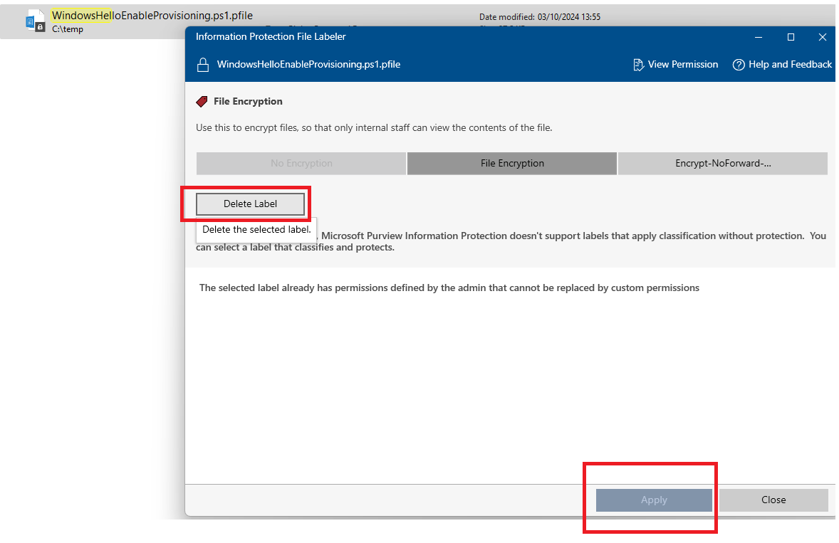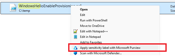 Click "Apply Sensitivity Label with Microsoft Purview."